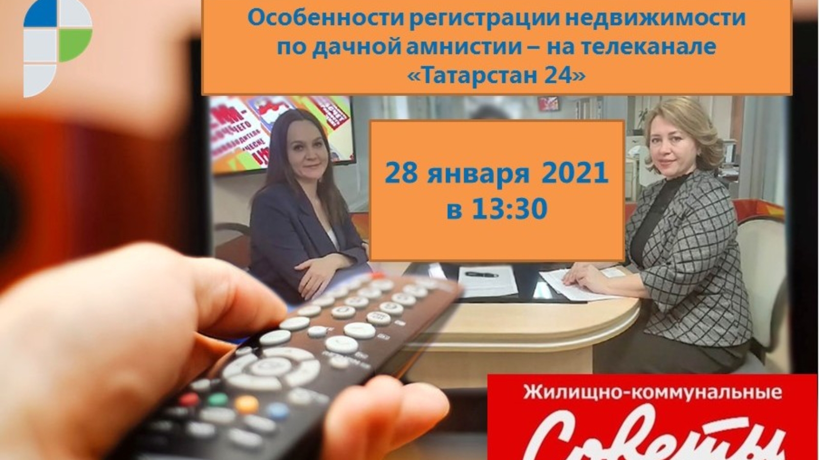 28 января в 13.30 на телеканале «Татарстан 24» в прямом эфире состоится программа «Жилищно-коммунальные советы», посвященная вопросам регистрации недвижимости по возобновленной «дачной амнистии». Разъяснения по данной теме дадут эксперты Росреестра Татарстана и Кадастровой палаты.