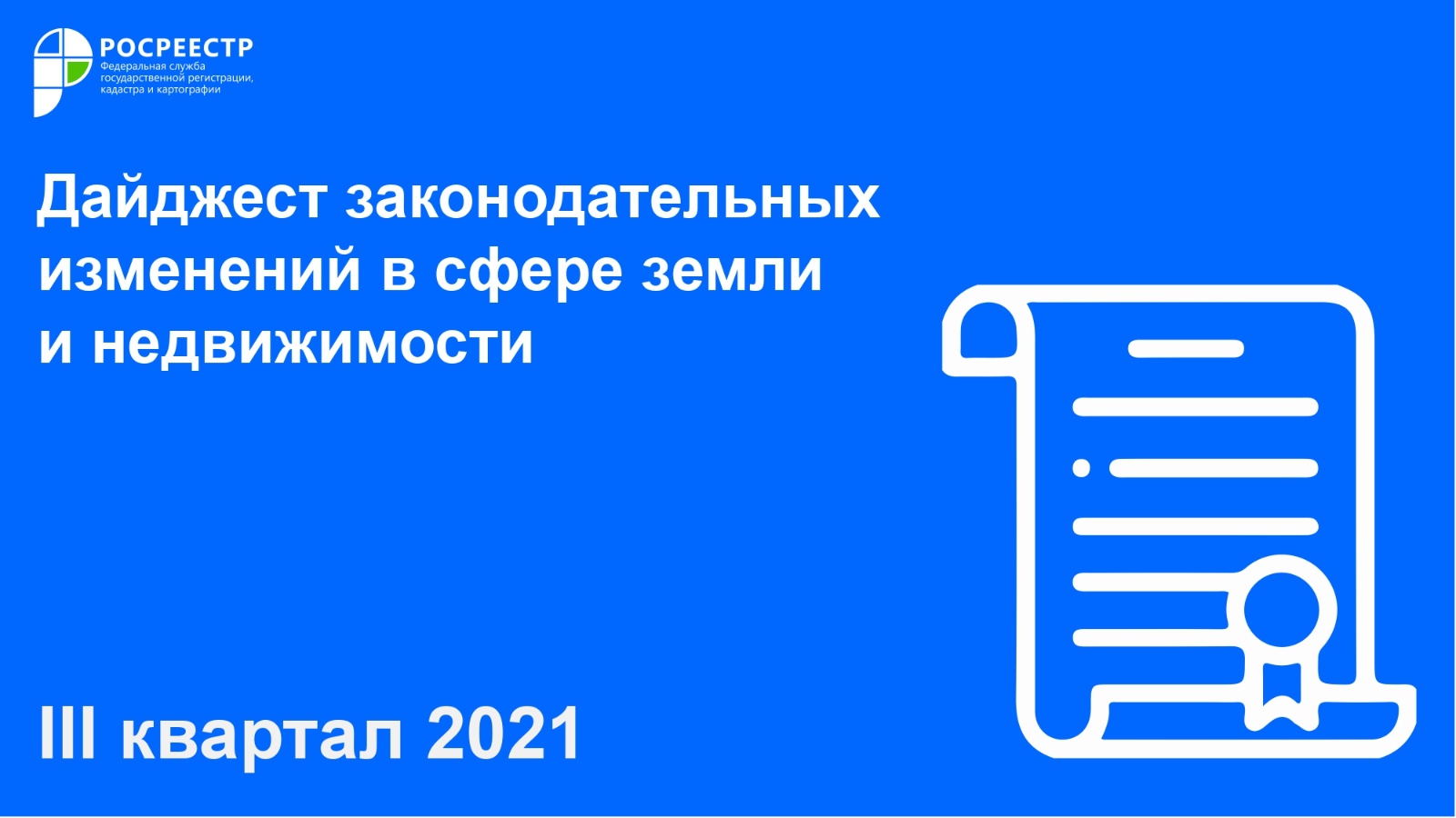 На сайте Росреестра Татарстана опубликован очередной дайджест законодательных изменений в сфере земли и недвижимости за III квартал 2021 года. Документ разработан для оперативного информирования представителей органов власти, профессионального сообщества и граждан о правовых нововведениях по направлениям деятельности ведомства.