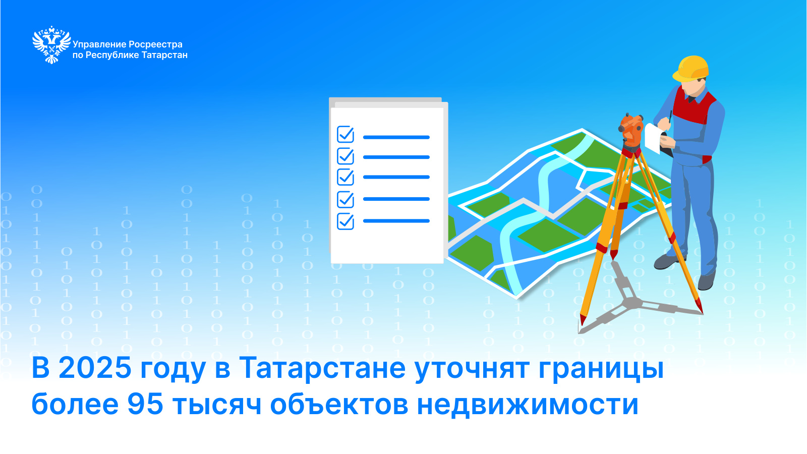 В текущем году на территории Татарстана проведут комплексные кадастровые работы, в ходе которых будут уточнены границы свыше 95 тысяч объектов недвижимости. Всего будет охвачено 150 кадастровых кварталов – в Казани и 11 районах республики: Апастовском, Арском, Балтасинском, Бугульминском, Высокогорском, Зеленодольском, Кукморском, Лаишевском, Нурлатском, Сабинском, Бугульминском, Лениногорском.
