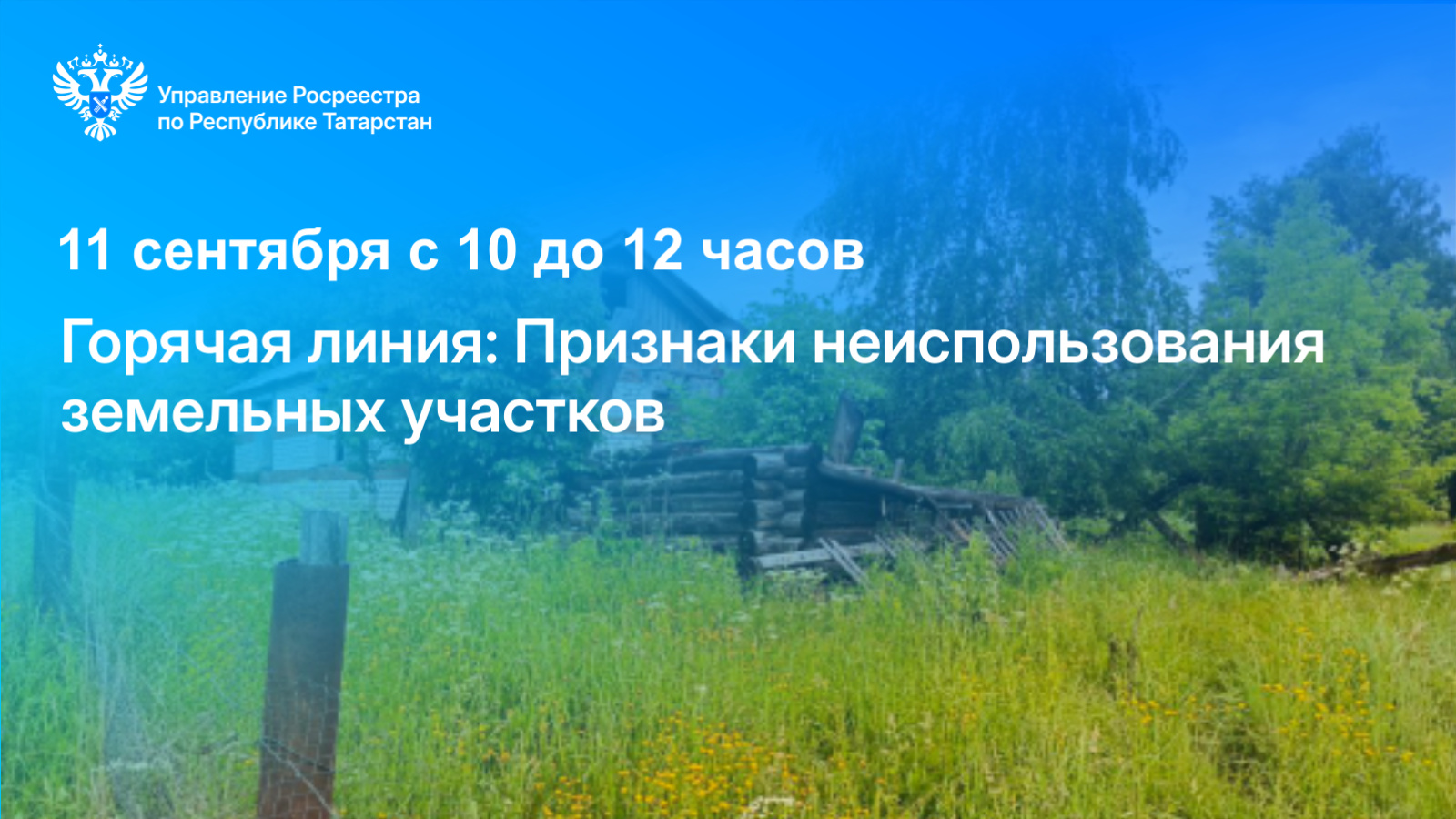 До конца этого года Росреестр Татарстана будет проводить горячие линии для собственников земельных участков, посвященные признакам неиспользования земельных участков в населённых пунктах, садовых и огородных товариществах. Первая горячая линия по данной теме пройдет 11 сентября с 10 до 12 часов.