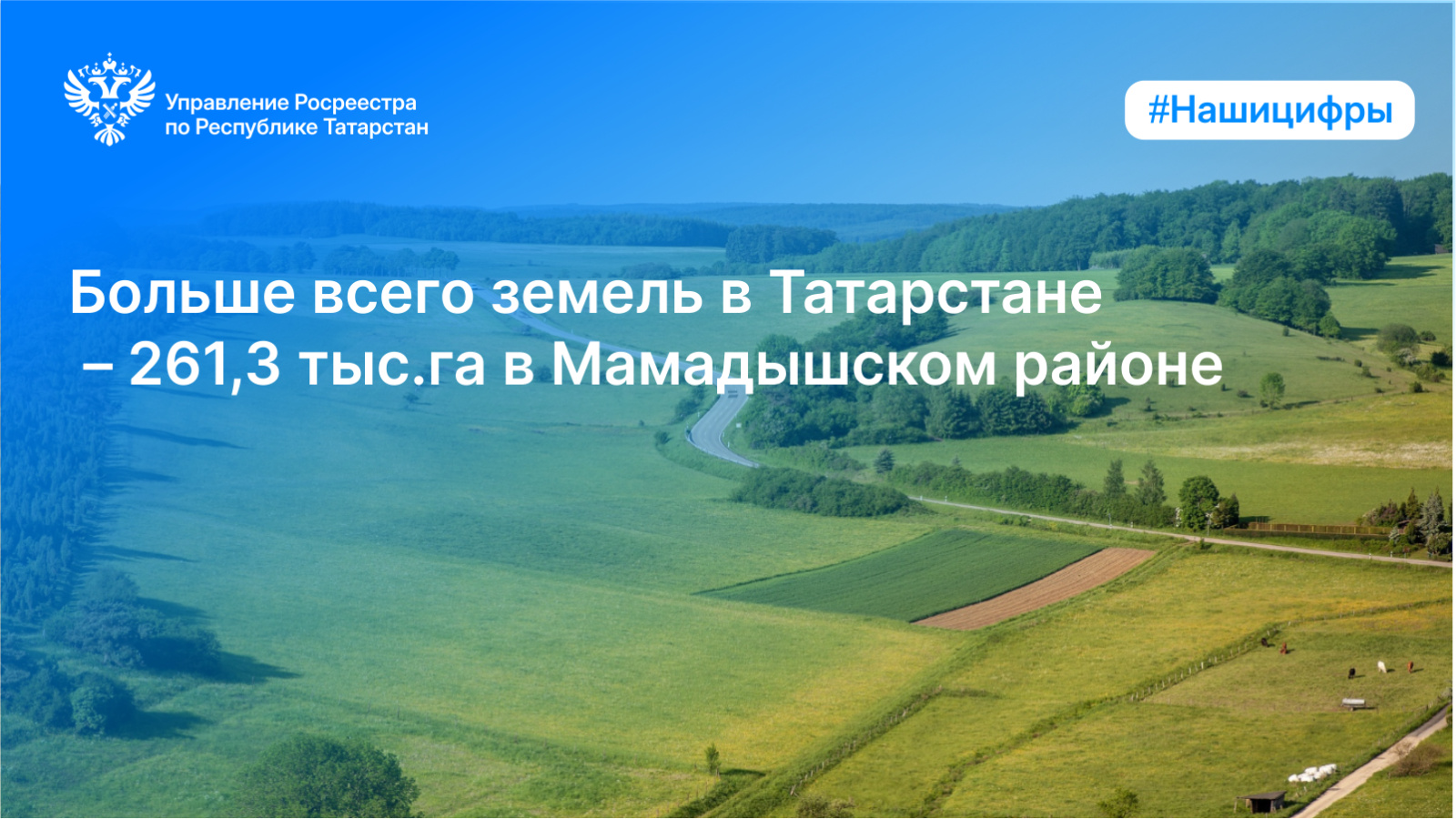 Росреестр Татарстана проанализировал земельный фонд Татарстана. По данным ведомства, больше всего земель – 261,3 тыс.га – в Мамадышском районе. На втором месте – Альметьевский (242,8 тыс.га), третьем – Нурлатский (227,1 тыс.га), четвертом - Азнакаевский (214,4 тыс.га) и пятом Лаишевский (209,4 тыс.га) районы.