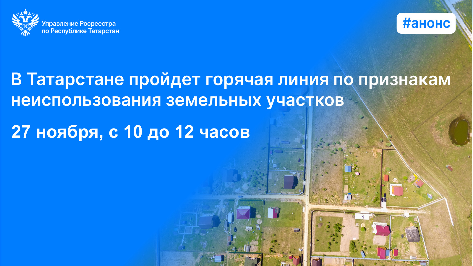 Завтра, 27 ноября, Управление Росреестра по Республике Татарстан организует телефонную горячую линию для владельцев земельных участков. Это связано с действием с 1 сентября этого года Постановления Правительства РФ, которое устанавливает признаки неиспользования земель, относящихся к землям населенных пунктов, садовых и огородных участков.