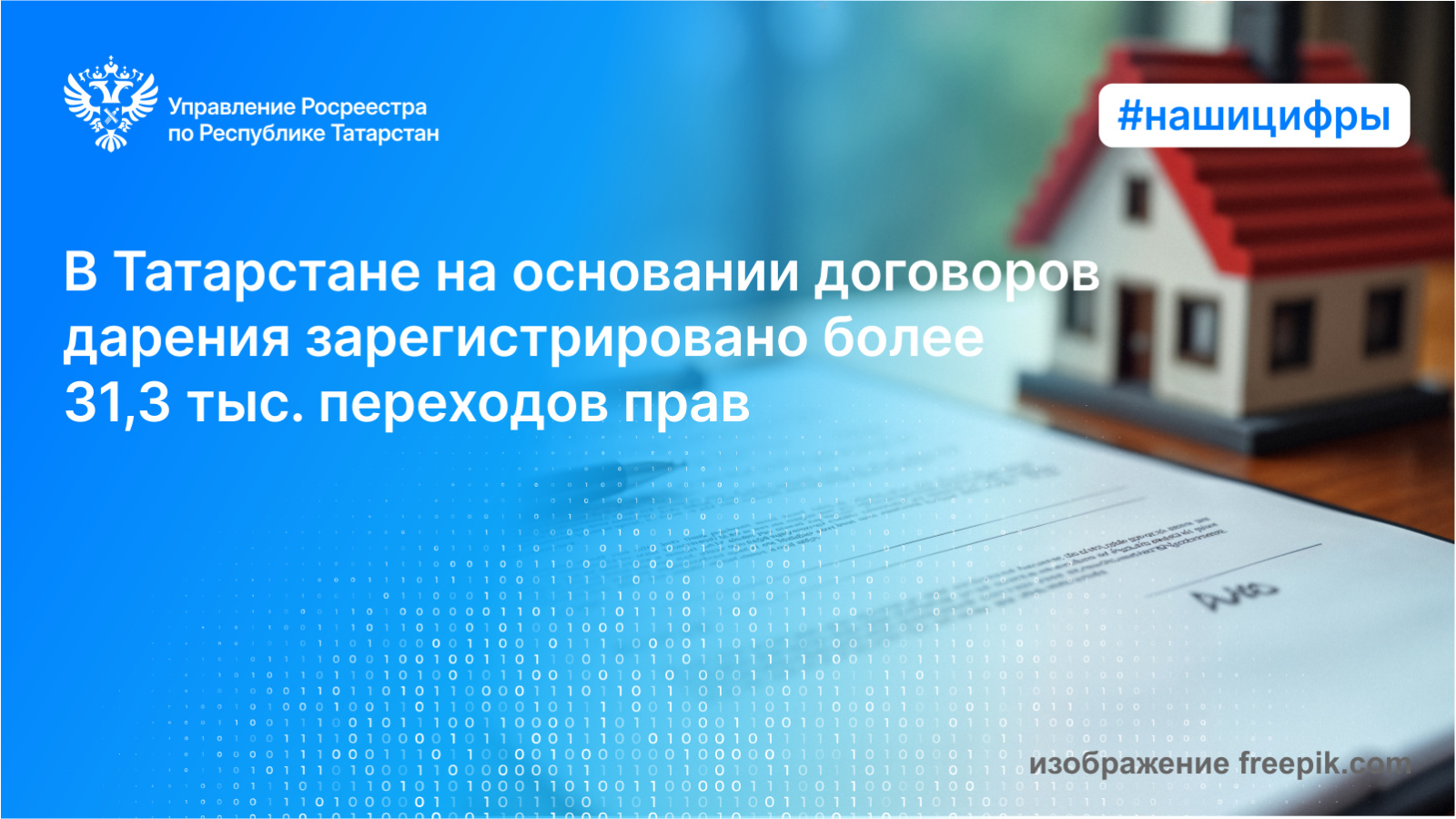 За 11 месяцев 2025 года Росреестром Татарстана на основании договоров дарения зарегистрировано более 31,3 тыс. переходов прав.