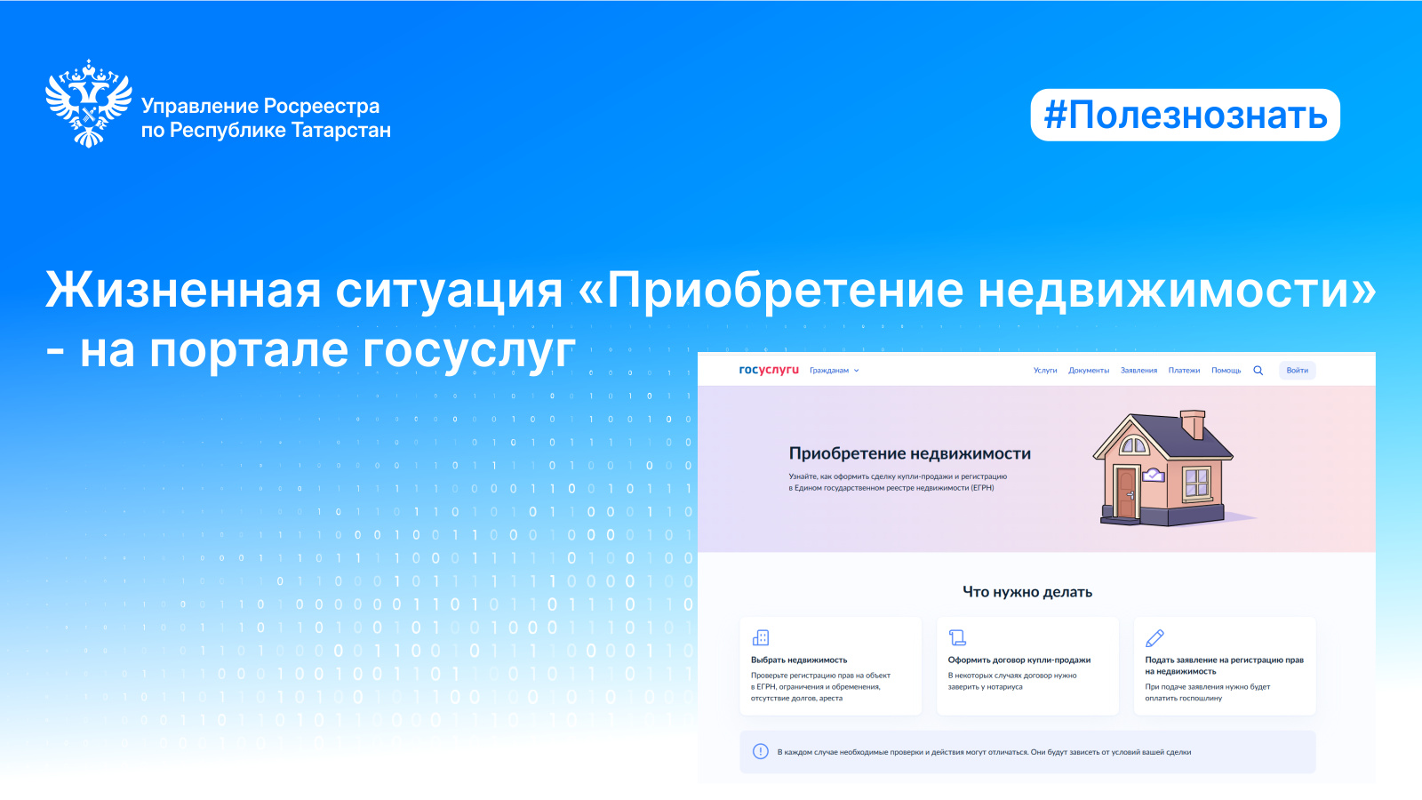В рамках нацпроекта «Экономика данных» и федерального проекта «Государство для людей» Росреестр участвует в реализации жизненных ситуаций (ЖС). В частности, в Каталоге ЖС на портале «Госуслуги» можно воспользоваться сервисом «Приобретение недвижимости».