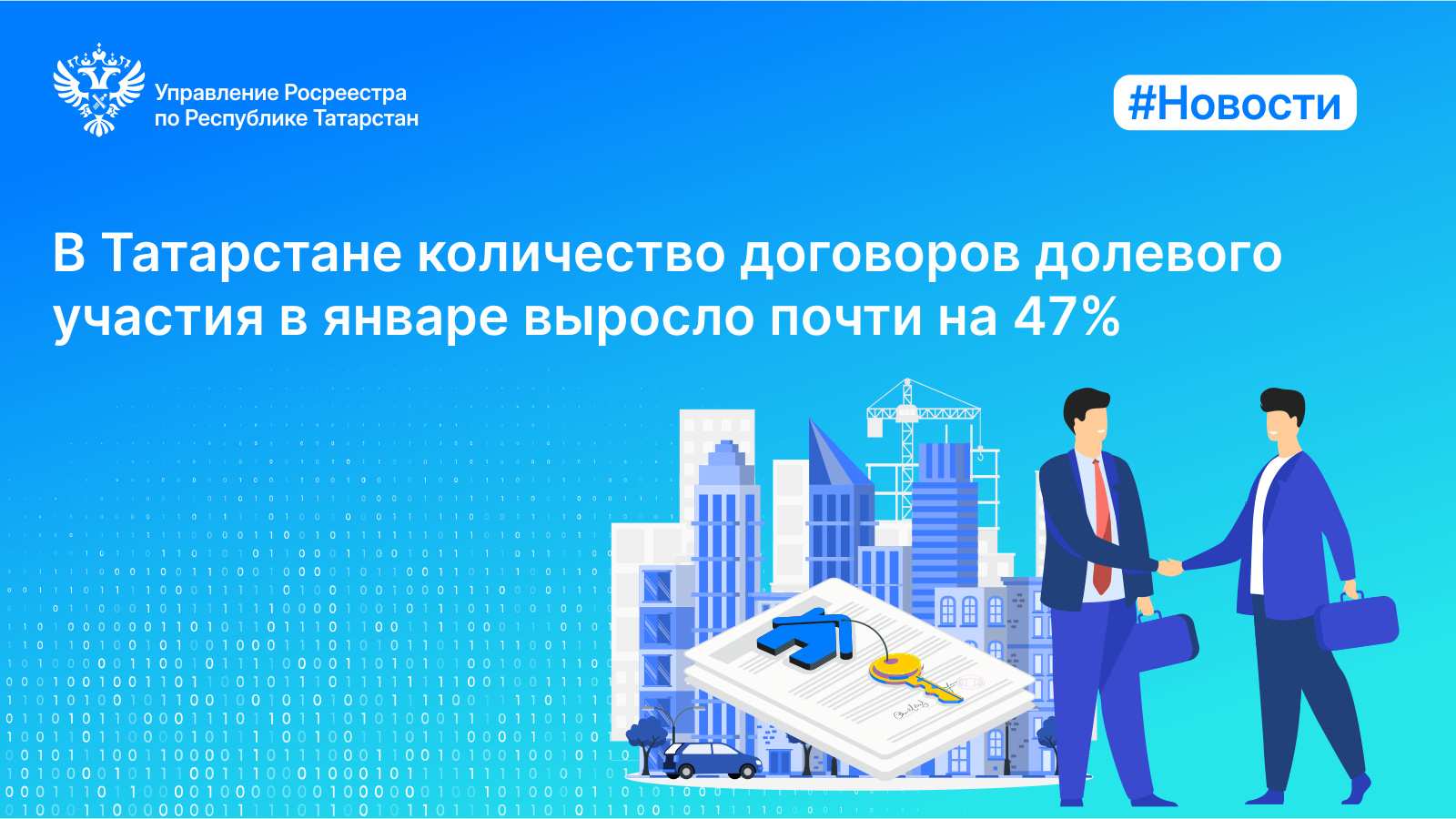 За первый месяц 2026 года Управлением Росреестра по Республике Татарстан зарегистрировано 2 011 договоров участия в долевом строительстве (ДДУ). По сравнению с аналогичным периодом прошлого года, это на 46,6% больше (в январе 2025 года было зарегистрировано 1 372 ДДУ).