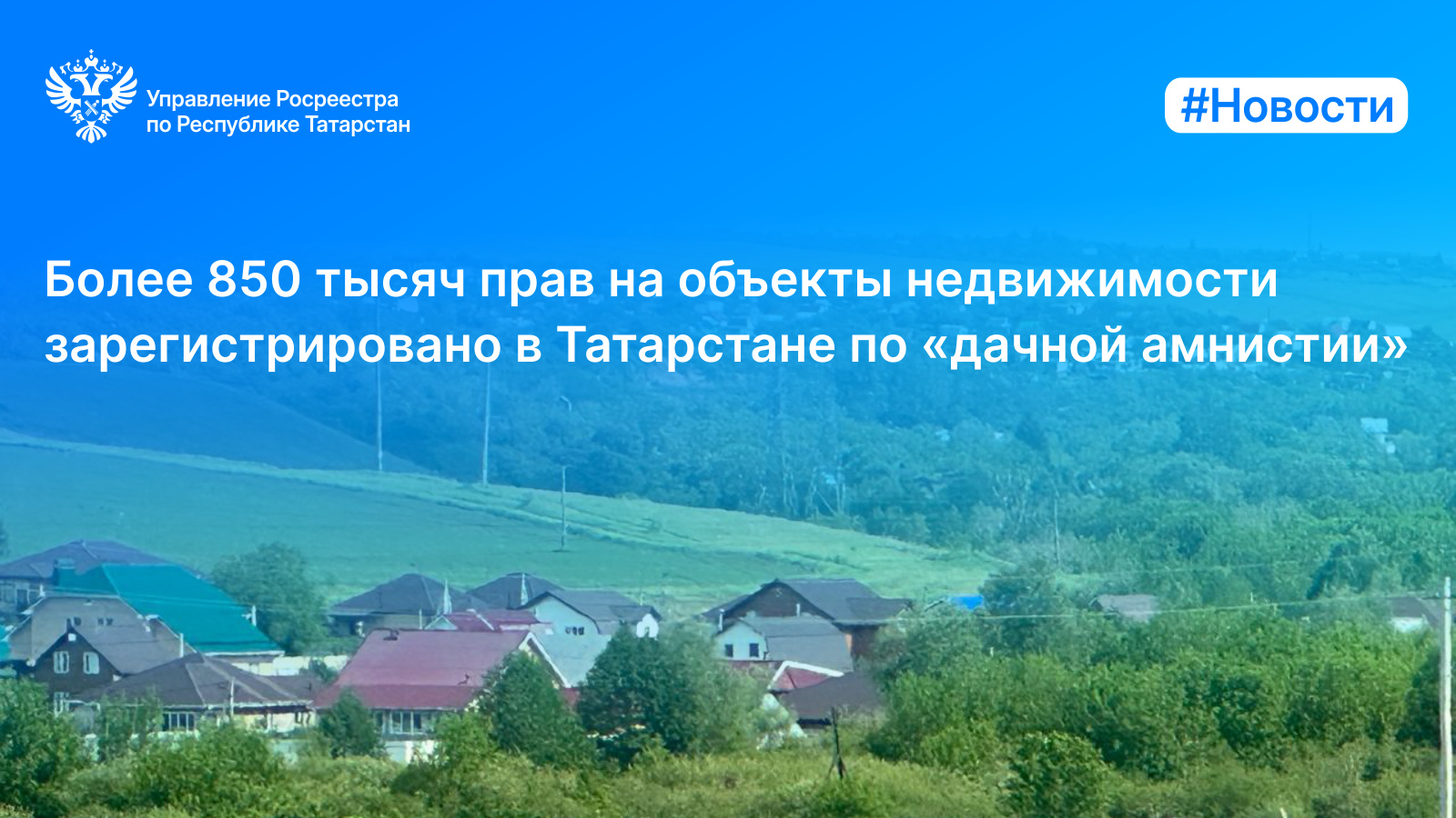С момента начала реализации Федерального закона о «дачной амнистии» (с 2006 года) Управлением Росреестра по Республике Татарстан зарегистрировано свыше 426,7 тысяч прав на земельные участки, около 303 тысяч прав - на жилые дома, а также более 121,6 тысяч прав – на иные объекты недвижимости, для строительства которых не требуется получение разрешения на строительство и подготовка уведомлений (хозяйственные постройки, бани, гаражи и т.д.).