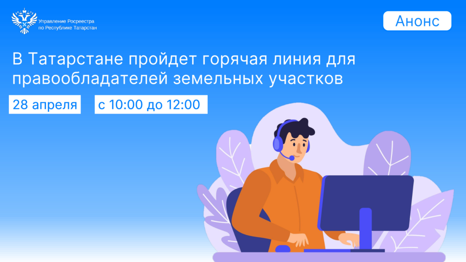 Завтра, 28 апреля, Росреестр Татарстана проведет горячую линию, посвященную вопросам использования земельных участков, расположенных в населённых пунктах, а также в садоводческих товариществах.